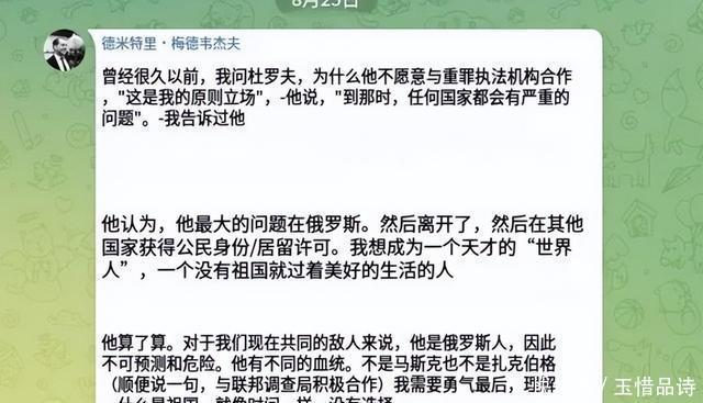 俄罗斯反应快。2024年8月25日,国家杜马副主席达万科夫呼吁外交部帮忙。外交部说,通过驻法国大使馆了解情况,采取措施。但杜罗夫有法国国籍,这事儿成法国内部事,没引渡空间。俄罗斯前总统梅德韦杰夫在Telegram发帖,说杜罗夫以为离开就能好过,但哪都改不了出身,祖国选不了。俄罗斯十年没动他,那些跑路的寡头下场大家都知道,俄罗斯有能力收拾,但没下手。杜罗夫这走法,等于是做空祖国,现在反噬来了。 杜罗夫案子拖到现在,2025年3月,法官松口,让他临时出国,但每14天得回法国。2025年6月9日,他第一次公开采访,说调查没证据。2025年6月19日,他宣布把170亿遗产分给106个孩子,得2055年后继承。2025年8月25日,一周年那天,他在Telegram发帖,吐槽法国调查荒唐,啥都没查出,只毁了法国自由形象。他还说,宁愿死也不给第三方访问用户数据。案子没上诉日期,他还得每14天飞回去,生活被绑死。